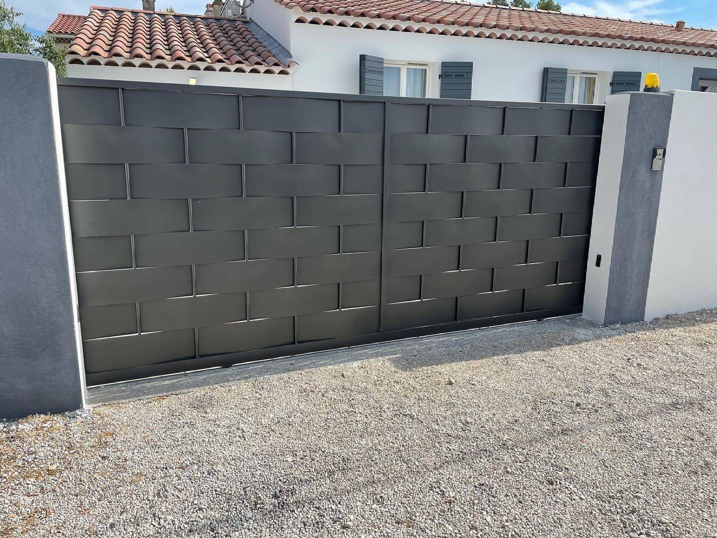 La finition du portail est thermolaquée 2100 en noir sablé pour éviter le moindre entretien.
